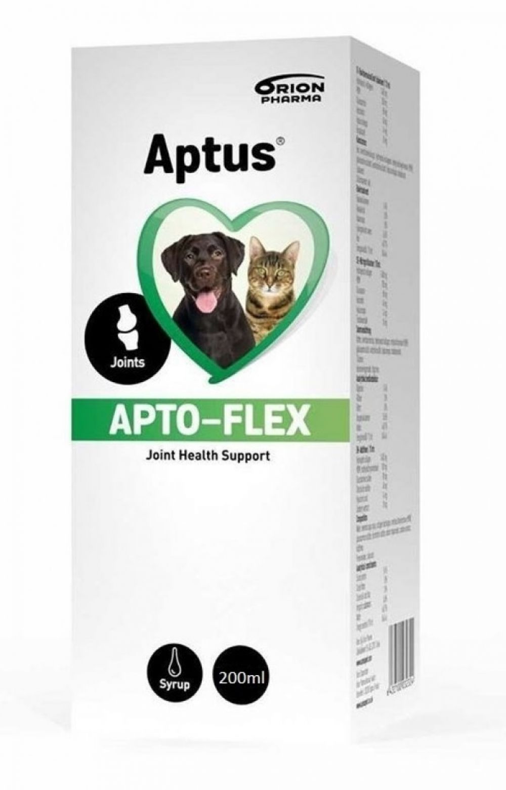 Aptus Apto-Flex este un sirop cu o combinatie ideala de substante traditionale pentru protectia cartilajelor si ligamentelor la caini si pisici (glucozaminsufhat, condroitinsulfat, MSM), la care au fost adăugate acid hialuronic şi colagen.