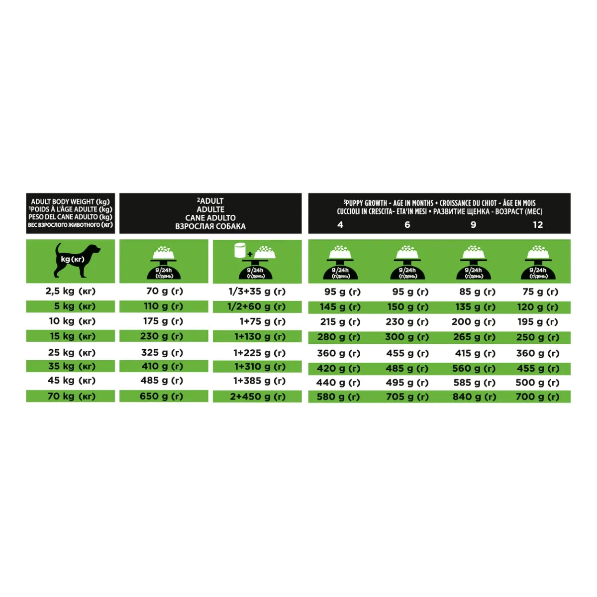 - Asigură-te că îi oferi câinelui tău cantitatea optimă de hrană de fiecare dată. Consultă ghidul de hrănire de pe spatele pachetului și ține cont de recomandările medicului veterinar pentru nevoile punctuale ale câinelui tău. Pentru menținerea unei condiții fizice ideale, trebuie ajustată cantitatea zilnică de hrană conform nivelului de activitate, condiției fizice și nevoilor individuale ale câinelui.