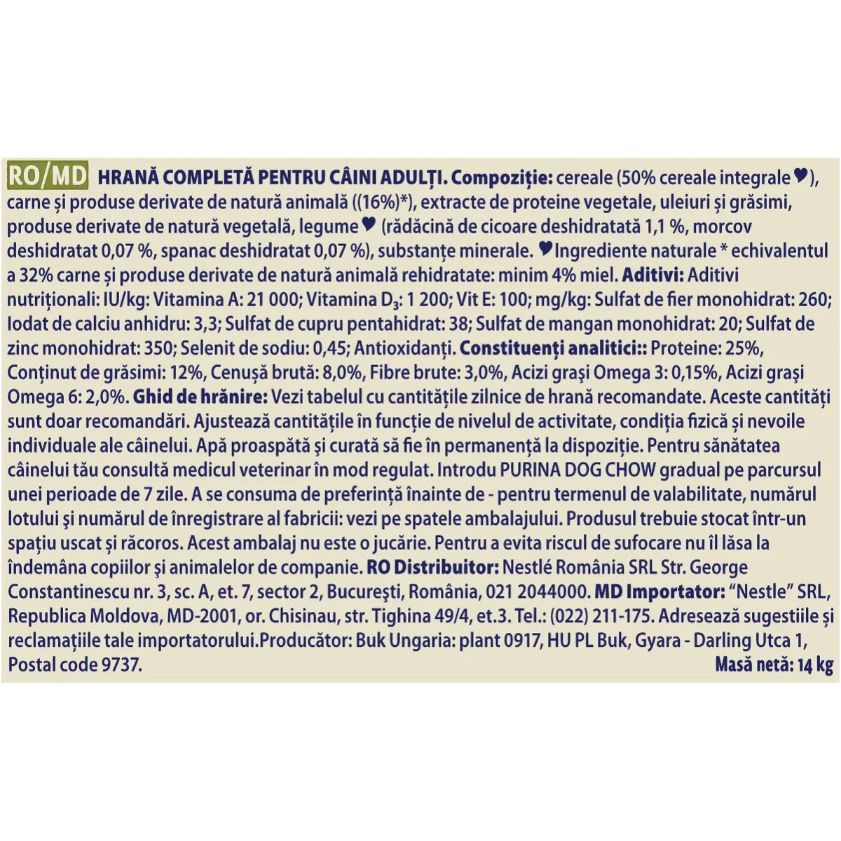 Ingrediente valoroase: adaptată în funcție de nevoile câinilor adulți, sprijină aportul optim de nutrienți.