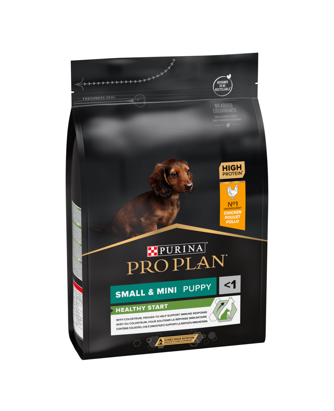 - Purina PRO PLAN Healthy Start SMALL&MINI PUPPY este potrivit pentru cațelușii mici și mini (greutate adult sub 10 kg). Această hrană uscată pentru căței conține vitamina D, minerale și niveluri specifice de omega-3 (0,4%) pentru a ajuta la menținerea sănătății dinților și gingiilor.