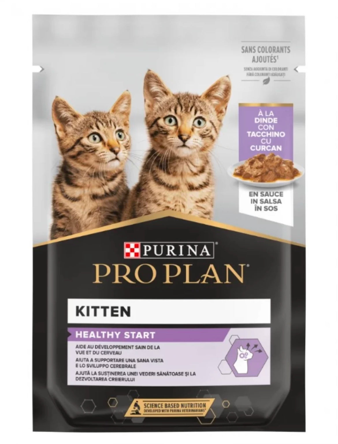 Puii de pisică cu vârsta cuprinsă între 6-12 săptămâni au nevoie de 1-4 plicuri pe zi; de la 12-26 săptămâni au nevoie de 2-5 plicuri pe zi şi pentru 26-52 săptămâni au nevoie de 5-3 plicuri pe zi în cel puţin 2 mese separate sau la discreţie. Fiecare pui este diferit, în funcţie de nivelul de activitate al puiului şi de condiţia fizică cantiatea de hrană şi timpul recomandat de hrănire trebuie să fie adaptate.