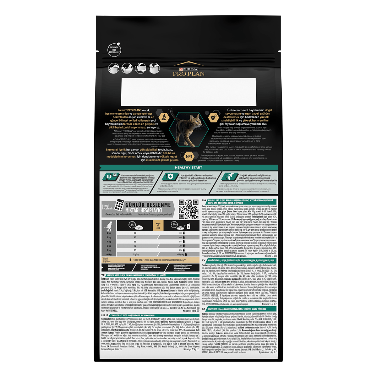 - Cantitățile de hrană recomandate pentru menținerea unei mase corporale adecvate variază în funcție de vârstă, activitate și mediu. Menține sub control greutatea pisicii tale și adaptează cantitatea de hrană în consecință. Apă proaspată și curată să fie în permanență la dispoziție. Pentru sănătatea pisicii tale consultă medicul veterinar în mod regulat. Consultă ghidul de hrănire de pe spatele pachetului.