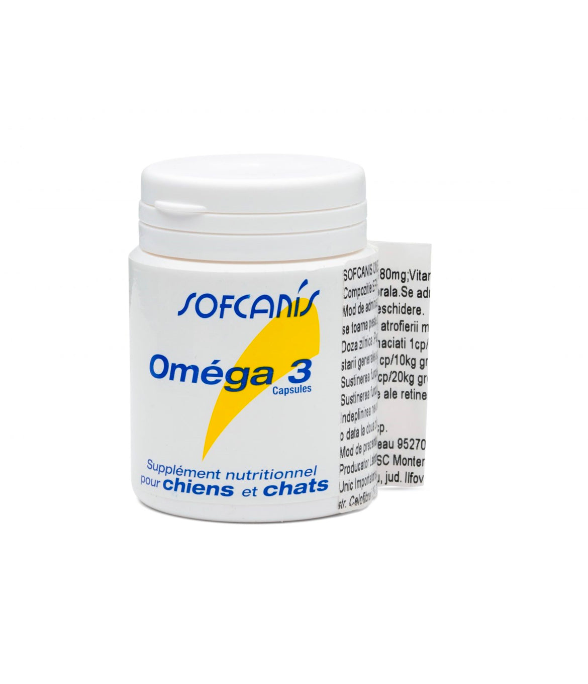 · Sofcanis Omega 3 este un supliment alimentar destinat câinilor și pisicilor ce ajută la creșterea sistemului imunitar și menținerea sistemului osos și al articulațiilor într-o stare bună de funcționare.